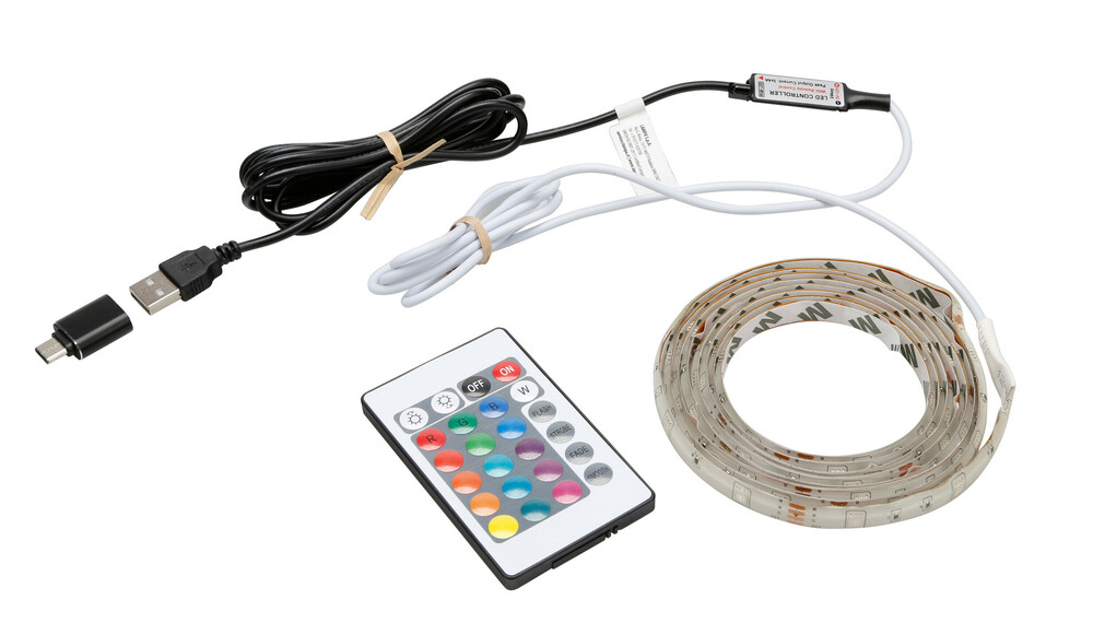 Flexibilní světelný LED pásek s konektorem USB v barevném provedení RGB.
